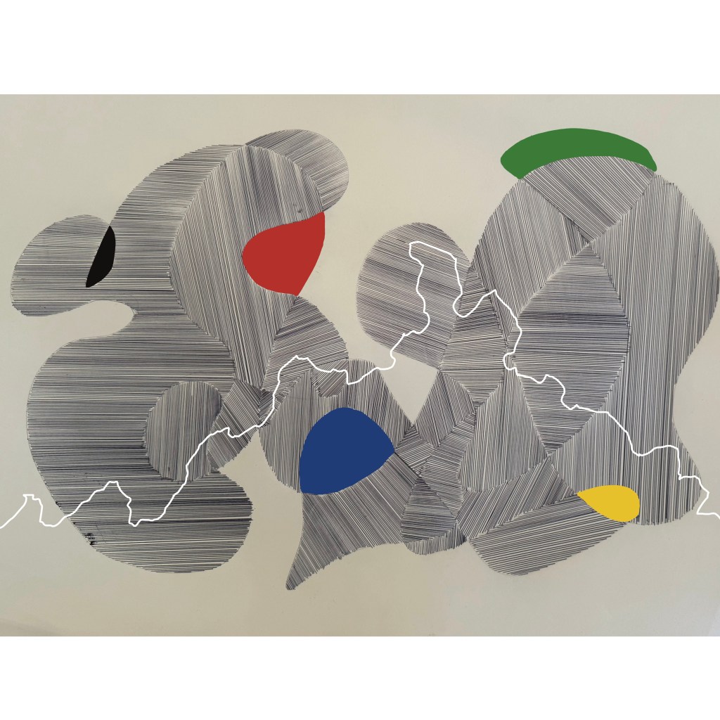 This time I used the same width of pen throughout but included some areas with broken lines as well as black gouache. I think this has caused it to be a more stylised image reminiscent of my original ‘doodles’. I think that I’ve gone backwards.
