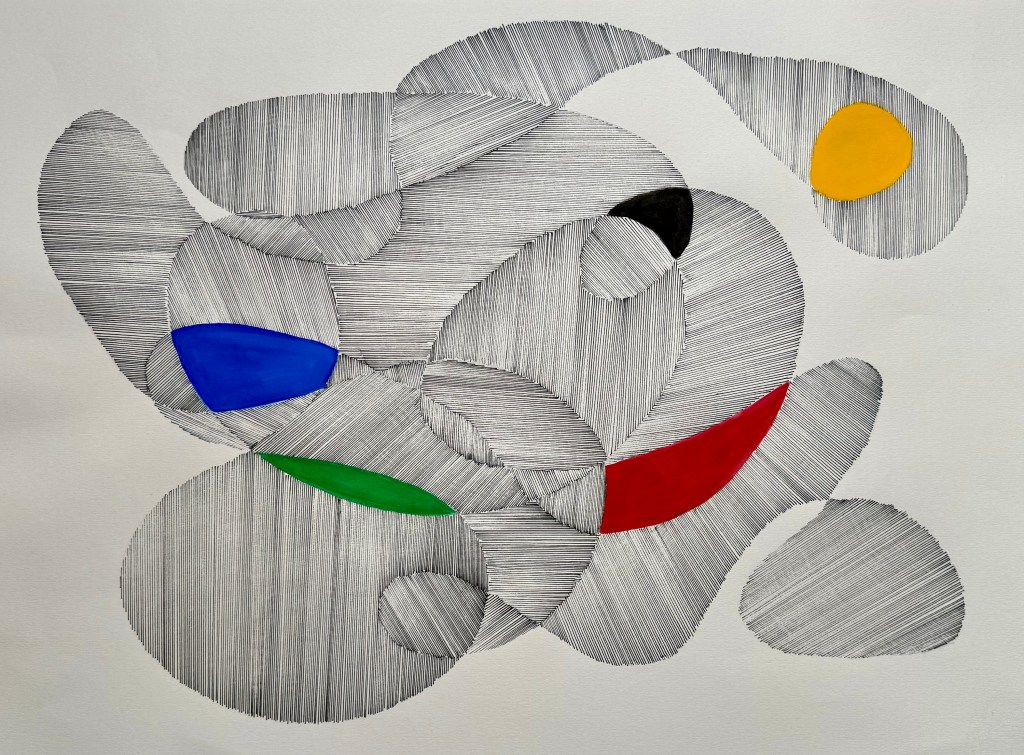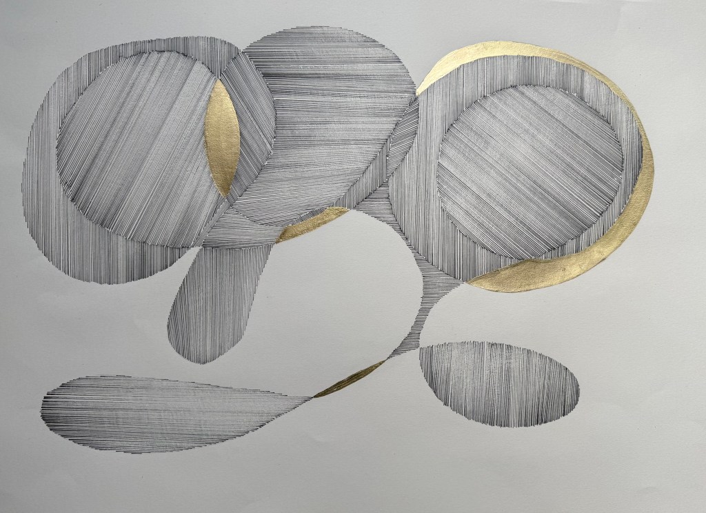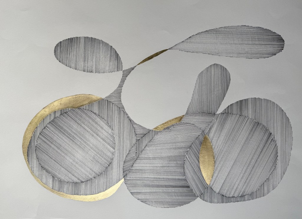 Moving away from organic shapes for a moment, and developing the sense of overlapping circles in my husband’s outline, I decided to try something more geometric.