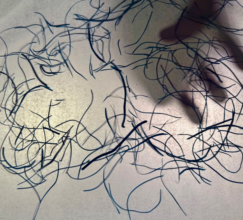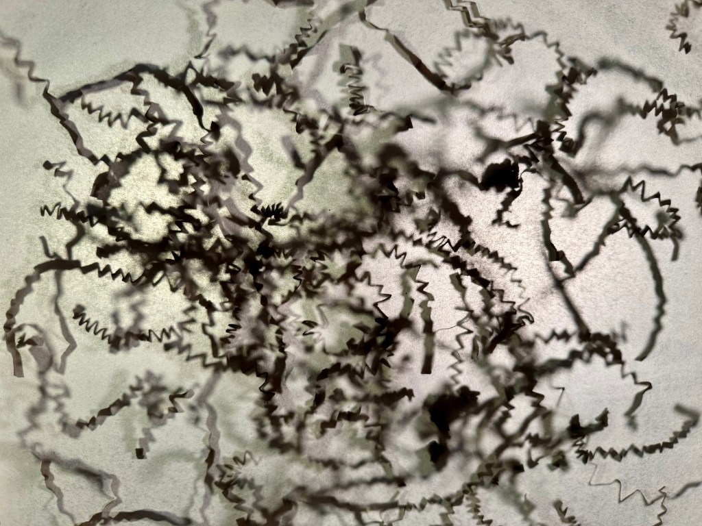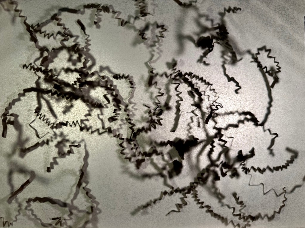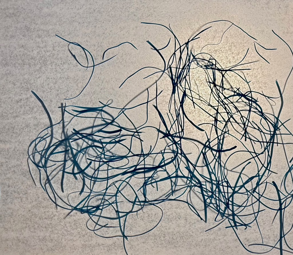 I also made a video of the ‘sprinkling’. Otto, the dog, was in the kitchen at the time and decided to have a bark and come close to my head grunting like a pig. I was in the process of cleaning up the audio – I was even going to try out Garage Band – but then decided not to. I used some audio effects in Capcut – Deep 2, Echo and Super Reverb. I wanted to make the audio unexpected – the sprinkling of something light has been distorted so that it sounds unusually heavy and the background noises are unexpected when heard with the visual which I think makes it more interesting and unexpected.