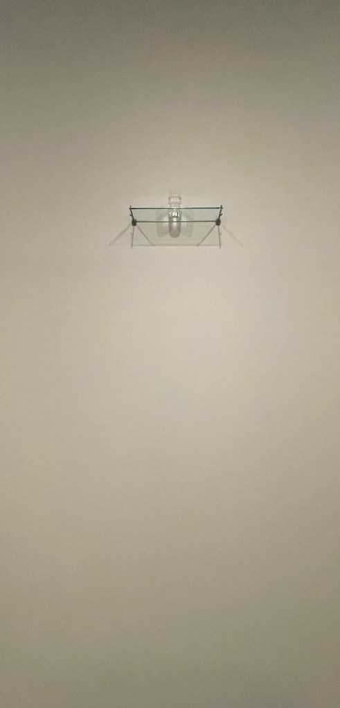 The Oak Tree (1974) is a small glass filled with water to a specific level and mounted on a wall at a specific height of 253cm. It is accompanied by the text of a conversation in which Craig-Martin explains how he has changed the glass of water into an oak tree without changing the physical form of the glass – I don’t know whether it was meant to be amusing, but I certainly had a titter. In a short film for the RA, which I watched when I got back home, he explains that he was trying to find something that constituted the essence of art, in that art is based on the notion of transformation, and the most extreme proposition for transformation would be to have no transformation at all. Others have alluded to his Catholic upbringing and have suggested that it is to do with transubstantiation. I also read that it was seized by Australian customs officials on its way to an exhibition in the 1970s on the basis that it was illegal to import plants into Australia!