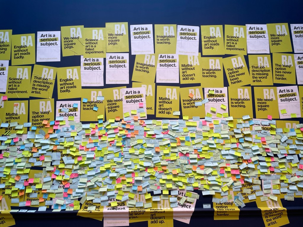 I went into the shop but didn’t buy anything: instead I had a look at the wall which supports teaching art in schools. I put a post-it note up following on from our session a couple of weeks ago: ‘creativity will save the planet’, but I forgot to take a photo.
