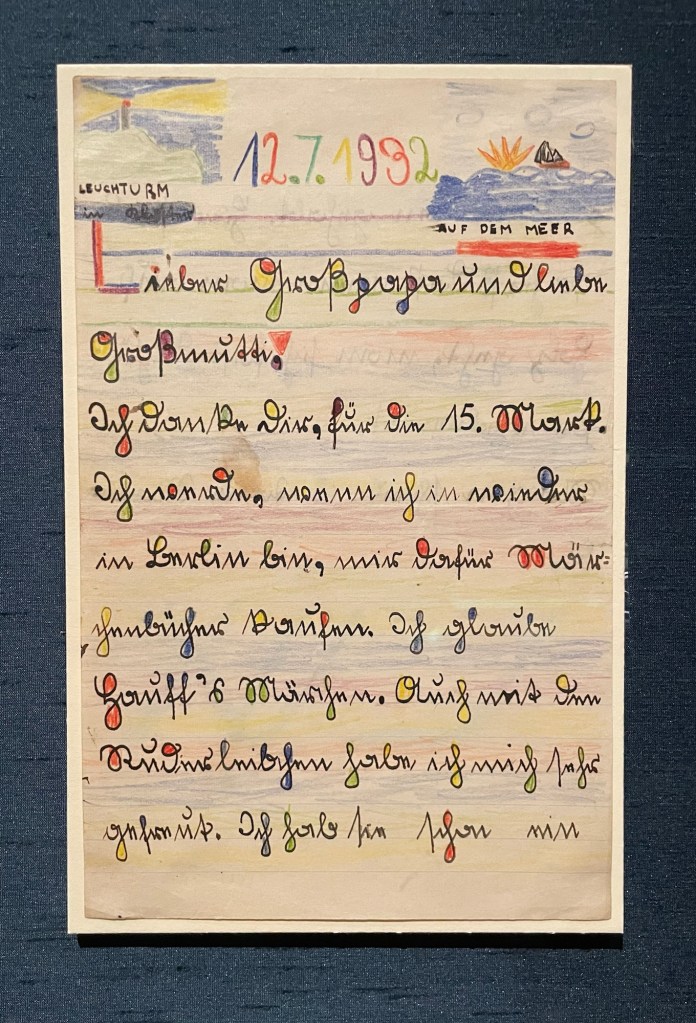 Lucian Freud’s letter to his grandparents, thanking them for the money they gave him, which he was going to use to buy a book of fairytales, reminded me of Miró with its coloured shapes and black lines. It took me back to a hot day in Sóller over the summer when we found relief from the sun in the train station, which happened to be exhibiting various ceramics by Picasso and works by Miró – can’t see that happening at Waterloo Station anytime soon. Freud’s self-portrait is a favourite: the way he applies paint and his minimal brushstrokes are lush.