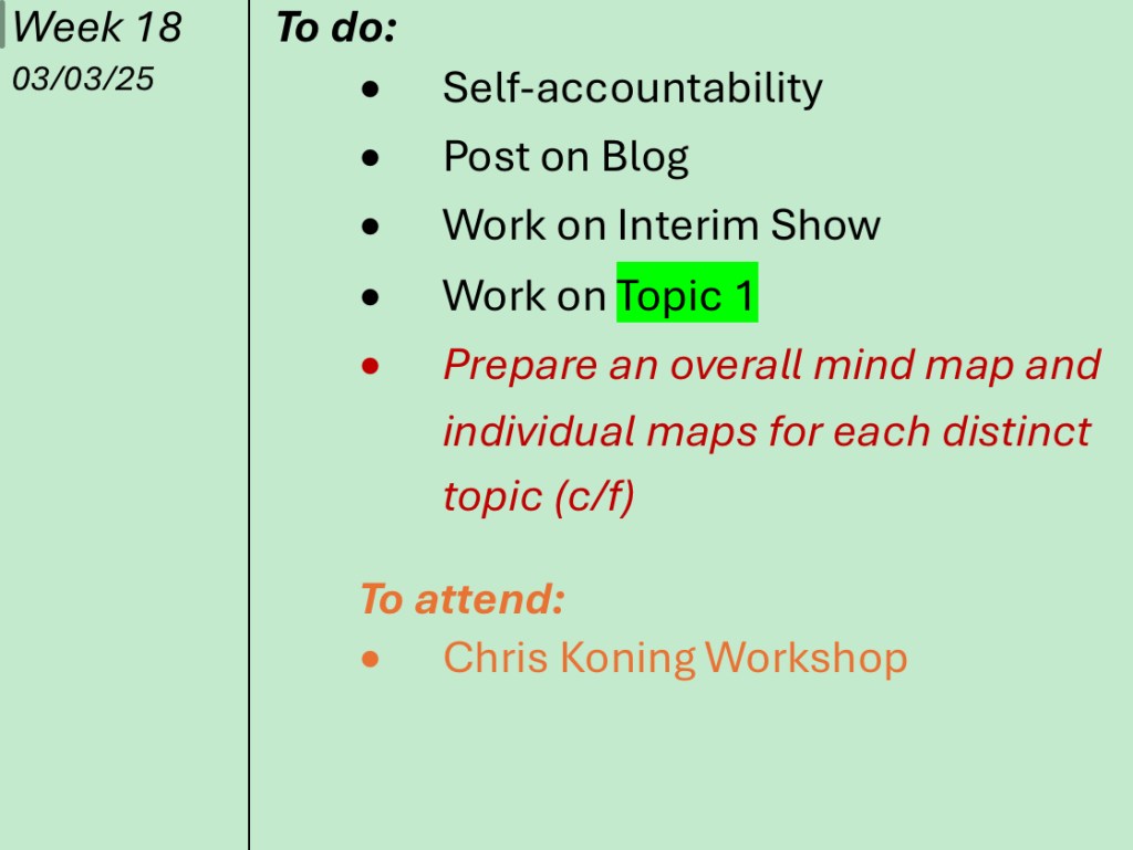When I curated my blog for the Unit 1 Assessment and looked back at my Study Statement I had a sudden realisation that I might never get to the end, that I had bitten off more than I could chew, that I would only be able to cover all of the individual elements I had identified in a cursory, superficial manner which would not do the subject, or me, any justice. For this reason, my request for specific feedback was: