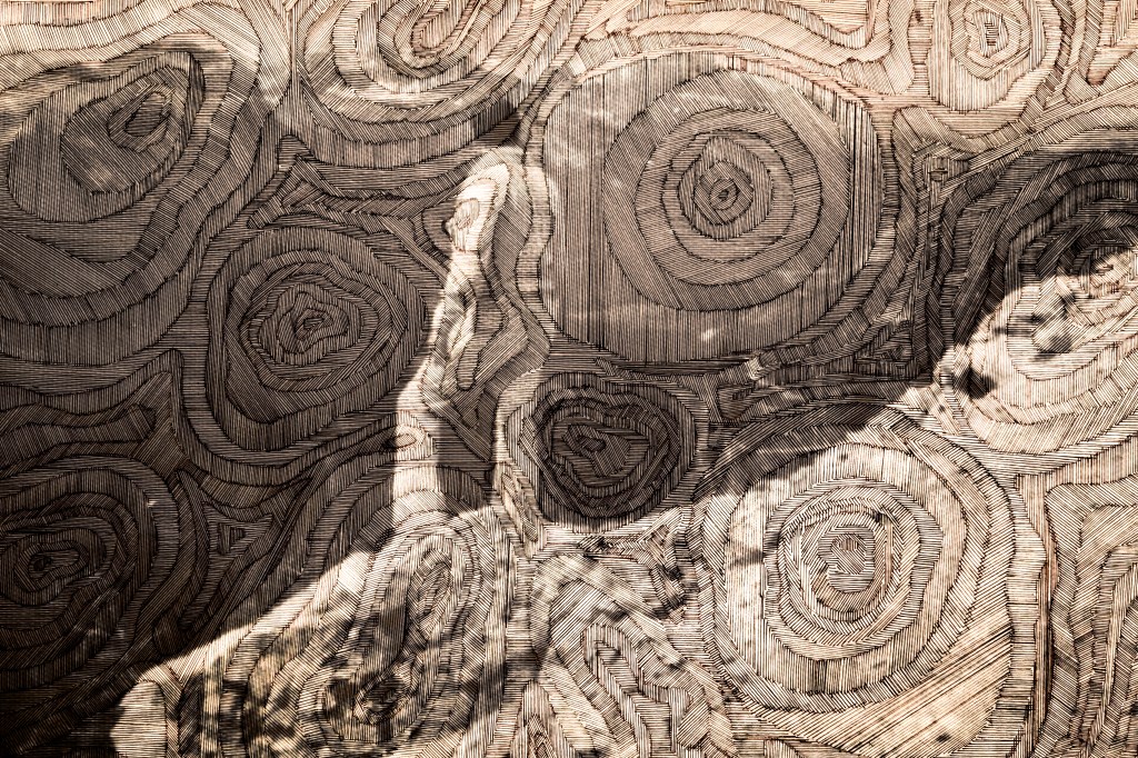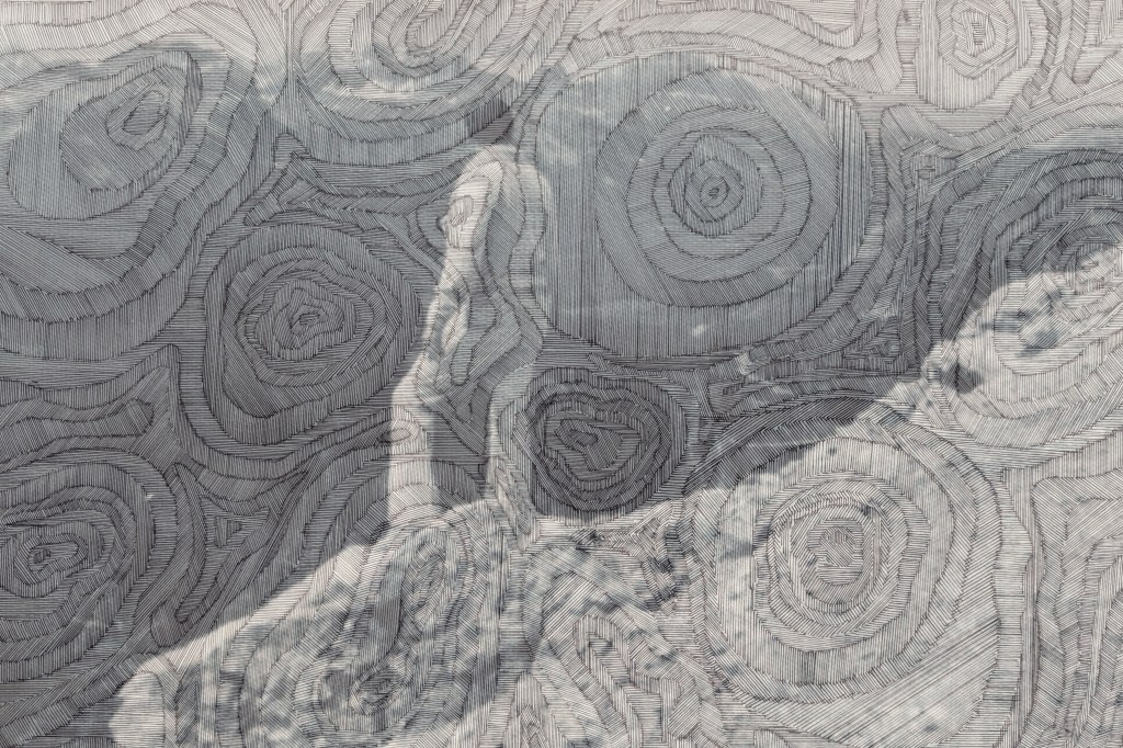 The image above is tonally bland; I prefer the one below. I like how the lined contouring gives the effect of the image being woven or embroidered.