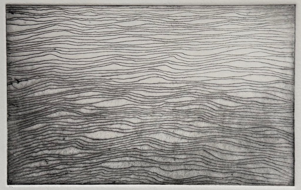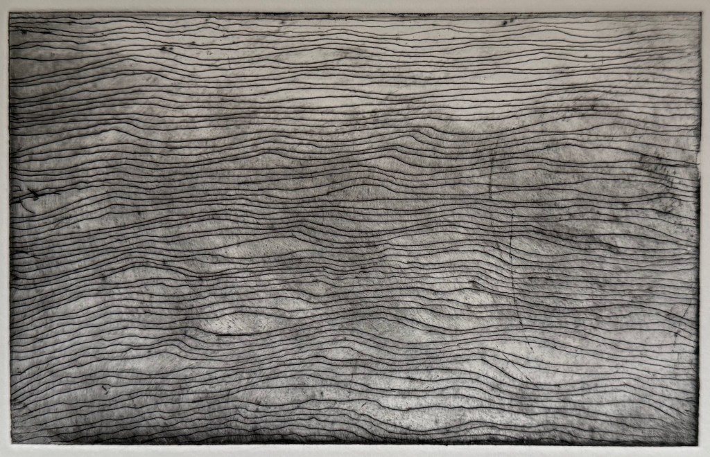 I chose the etching workshop on the Low Res. The others didn’t really appeal to me. At least this year I was a little less ‘rabbit in the headlights’, although I’m not sure about my choice just to draw wavy lines. The etching process was fine – I remembered most of it from last year.