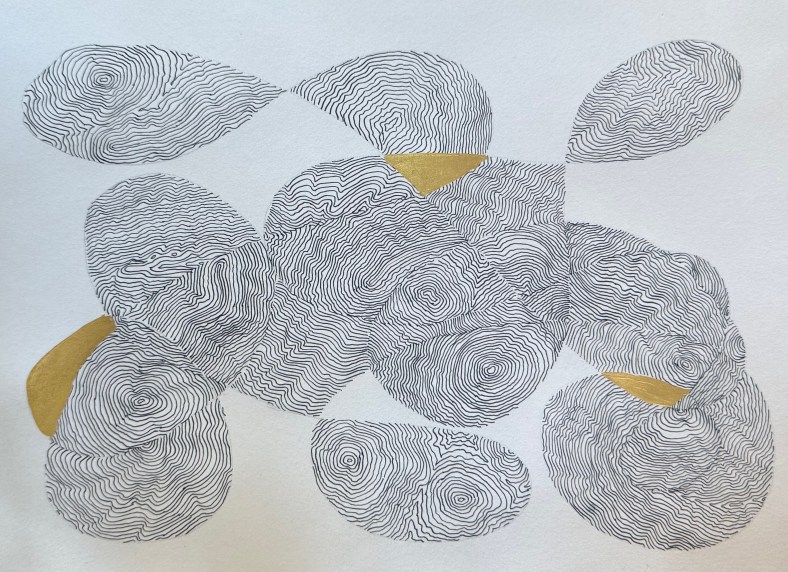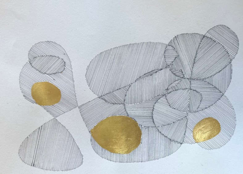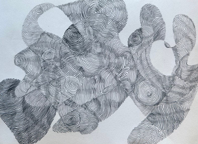 For the end papers I asked my husband and daughter to draw some more outlines for me to fill. I’d been experimenting with not using straight lines.