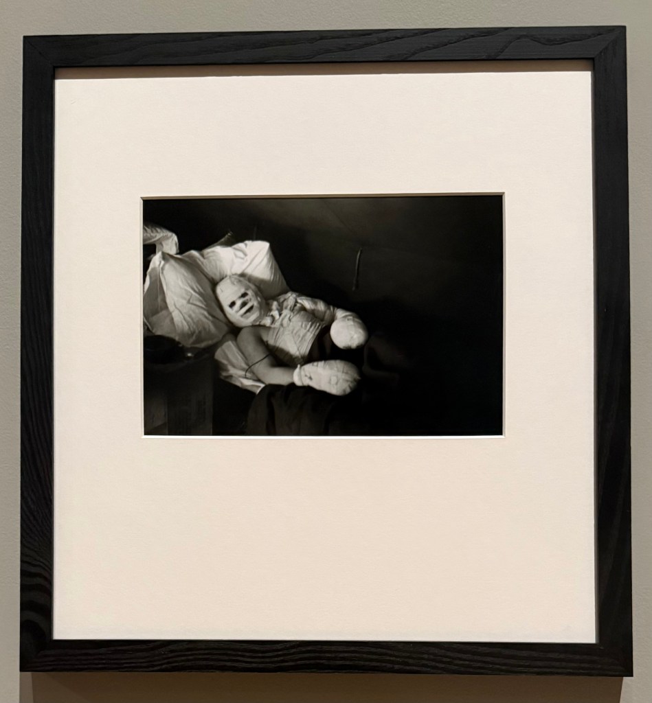 I hadn’t really been aware of Lee Miller before I went to see the film Lee, in which Kate Winslet plays her. At the end of the film, you see a selection of some of her most famous photographs including the one of her bathing in Hitler’s bath taken by her colleague, David E Scherman, as well as the scenes she witnessed at Buchenwald and Dachau, the mud of which is still on her boots which she has purposefully placed in front of the bath. Seeing them in the flesh, in a small side room, was incredibly moving. Not surprisingly, photography was not permitted in this part of the exhibition.