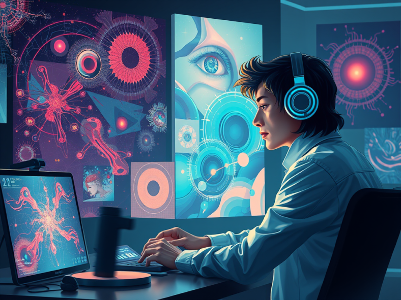 “Create a high-resolution, highly detailed image illustrating the theme of digital rights and AI regulation. Feature Baroness Beeban Kidron in a thoughtful pose, surrounded by symbols of creativity such as art supplies, musical instruments, and books. The backdrop should convey a digital landscape, with elements representing technology and copyright, like binary code and padlocks. Use soft, natural light to evoke a sense of seriousness, yet hopefulness. The image should be in a documentary style, capturing the urgency of the conversation about protecting creatives’ rights in the age of AI. Ensure sharp focus to highlight the intricate details in each element.”