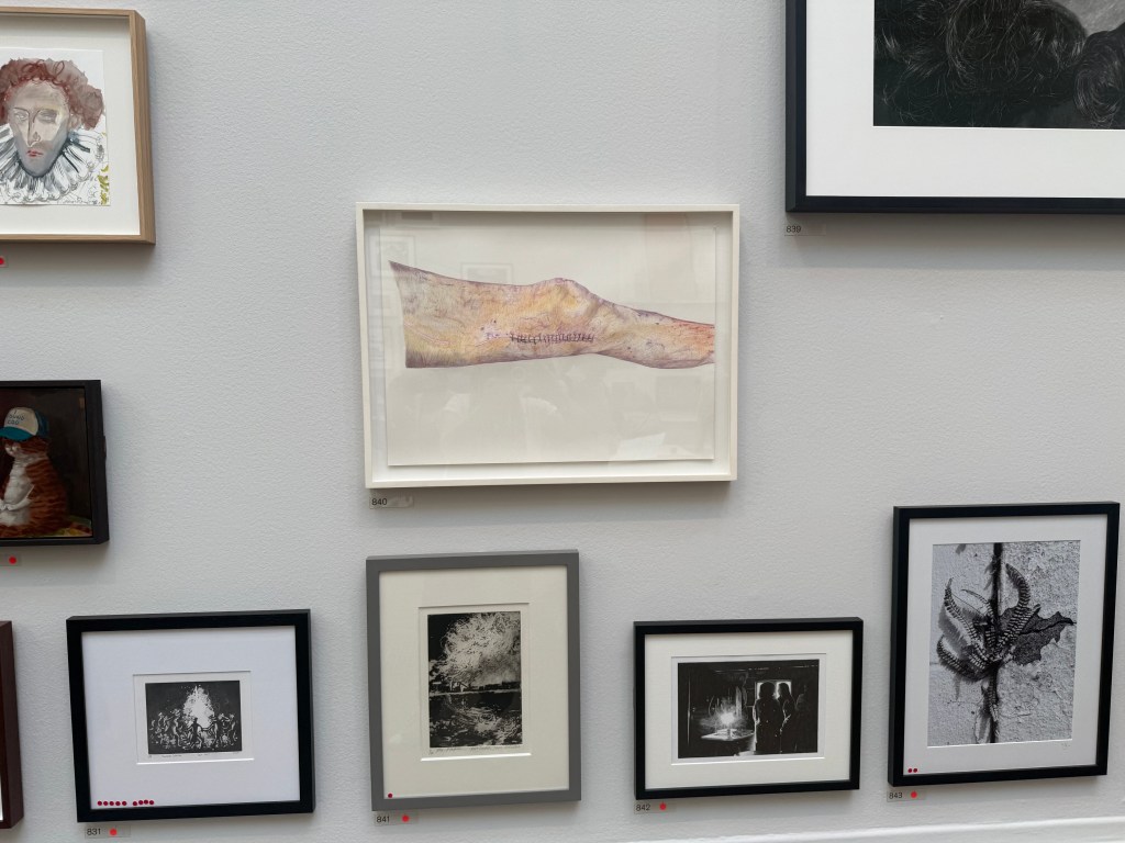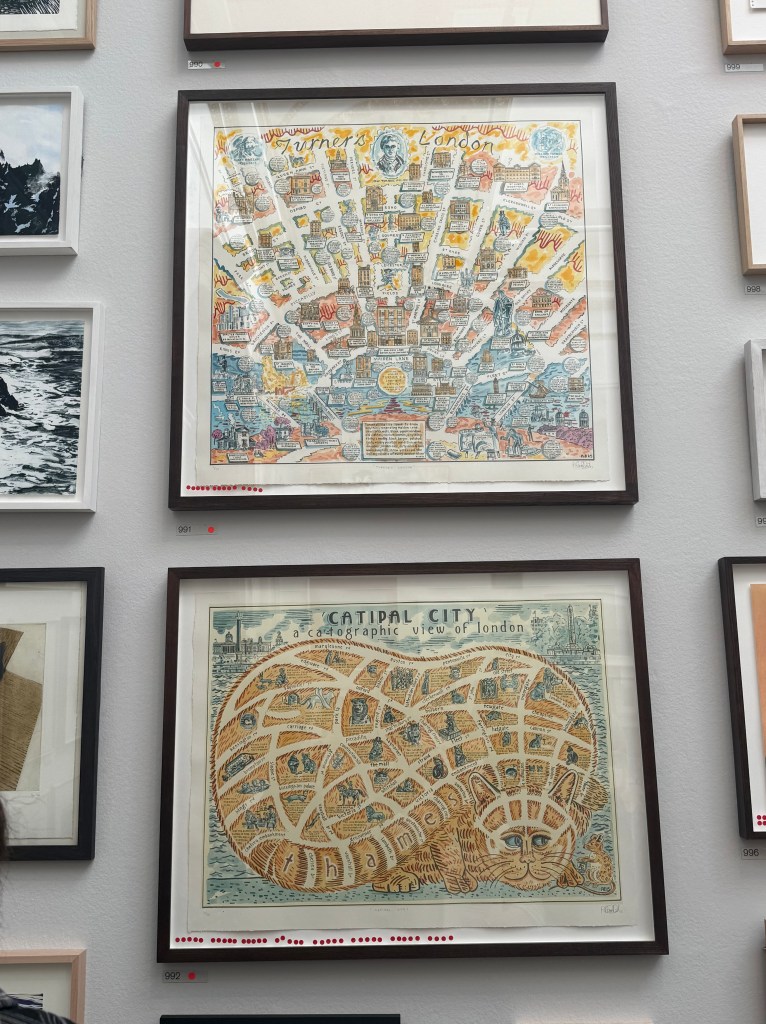 As is our habit, we went to the RA for the Summer Exhibition. I don’t think ‘A Die, A Log, With You’ was much missed. There was the usual mixed bag. I felt myself drawn to any pieces which bore any resemblance to maps or mapping.